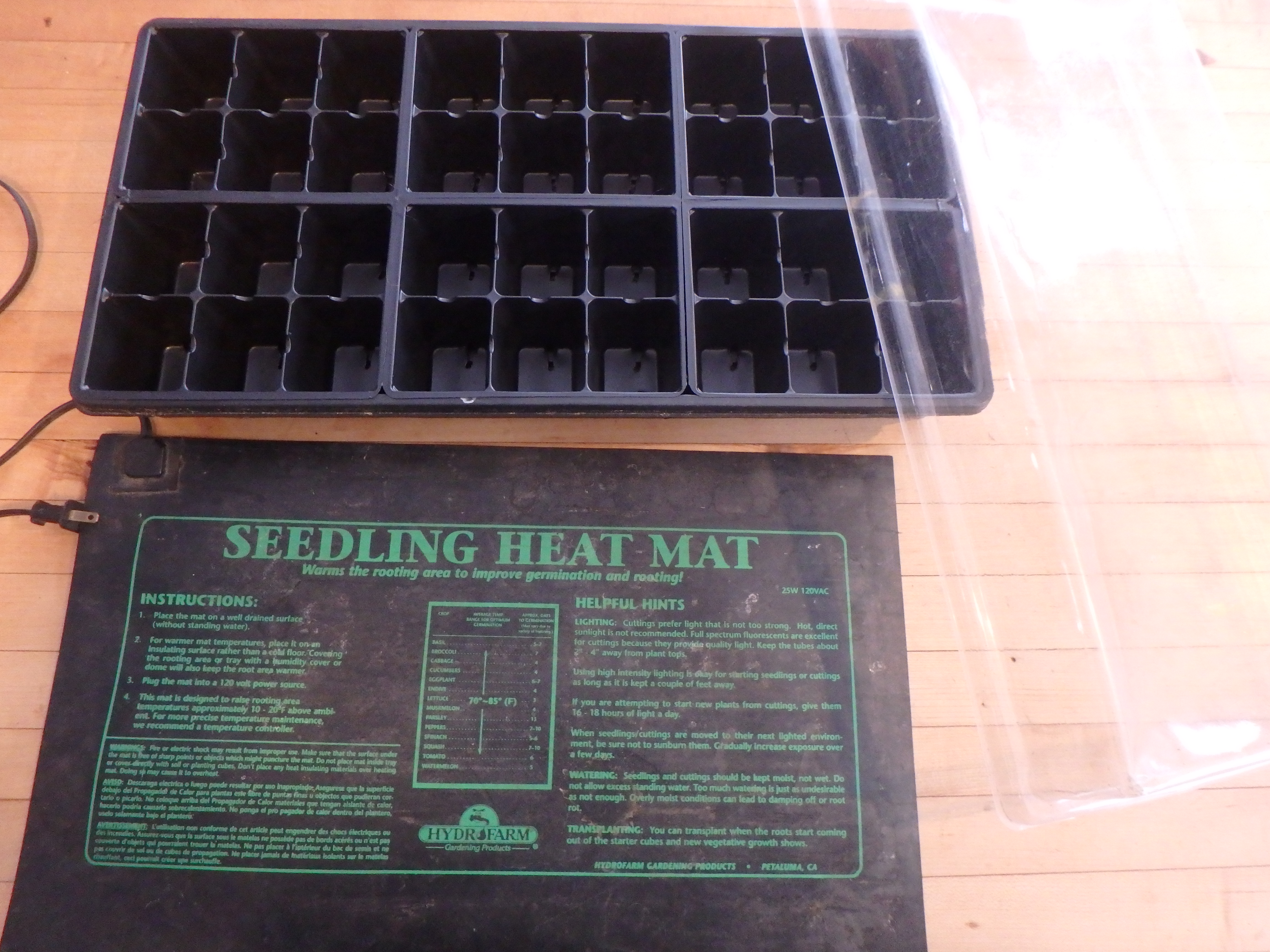 Seeds are very sensitive to drying out, especially just after they have germinated. To minimize the chances of that, I use plastic covers that fit on the flats. These are clear, allowing light to pass through, but not moisture. Safely stored, these are good for many years. You can save and wash the 6-packs but they are cheaply made and often crack or break, so I don’t bother most times.