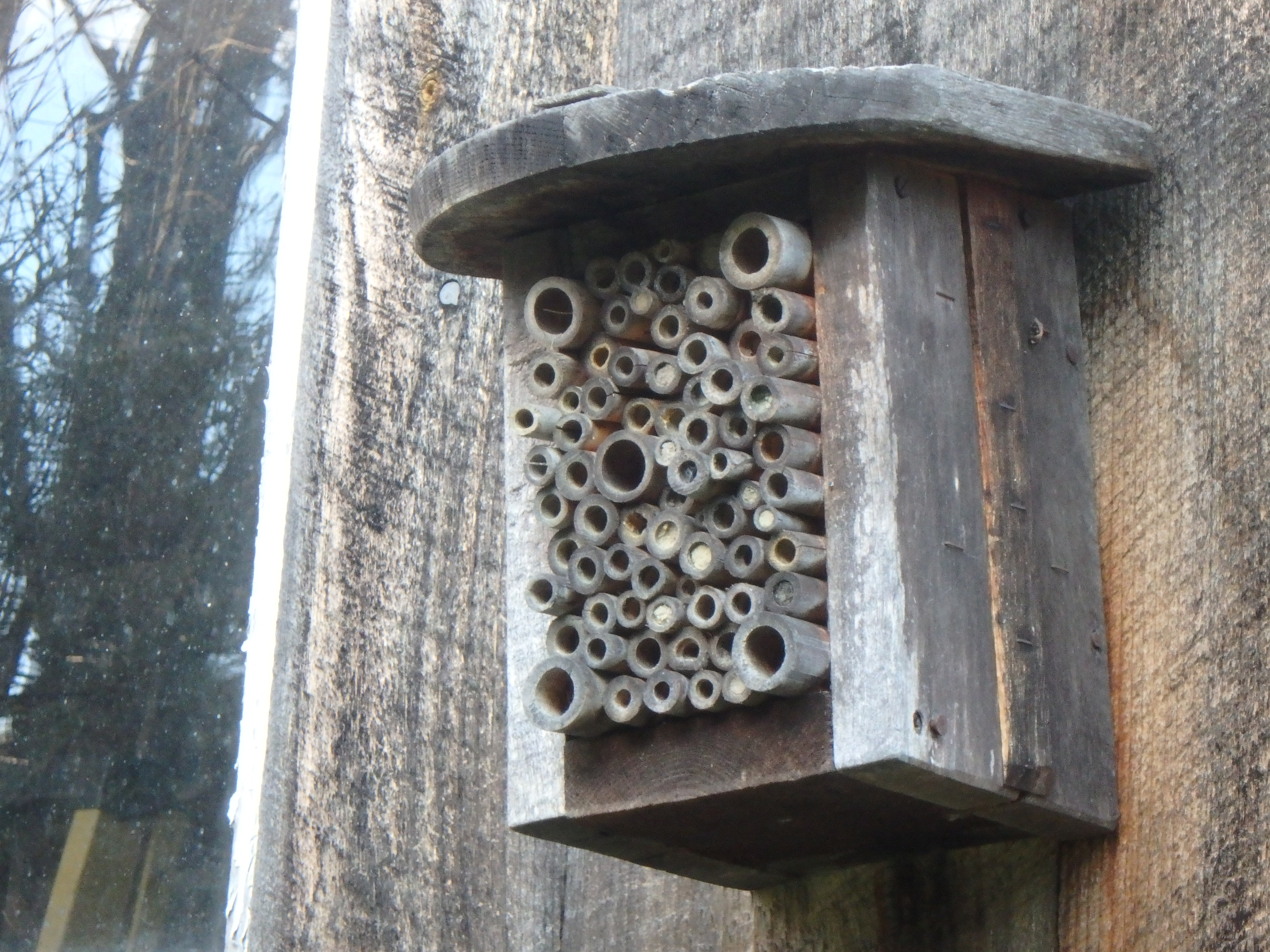 I have a small “home” for solitary wasps attached to my barn. It is a box filled with bamboo tubes of different sizes, their ends facing out. These tubes offer shelter for insects and places where they can lay eggs or stay out of danger. I don’t see it used much, but I know that solitary wasps do need such places. Nature offers the best places, I’m sure, so if I don’t rake and manicure every inch of my property. A naturalistic setting offers many sites for good bugs. Mother Nature, left to her own devices, tends to have a balance of good critters and bad. I try not to second guess her too often.