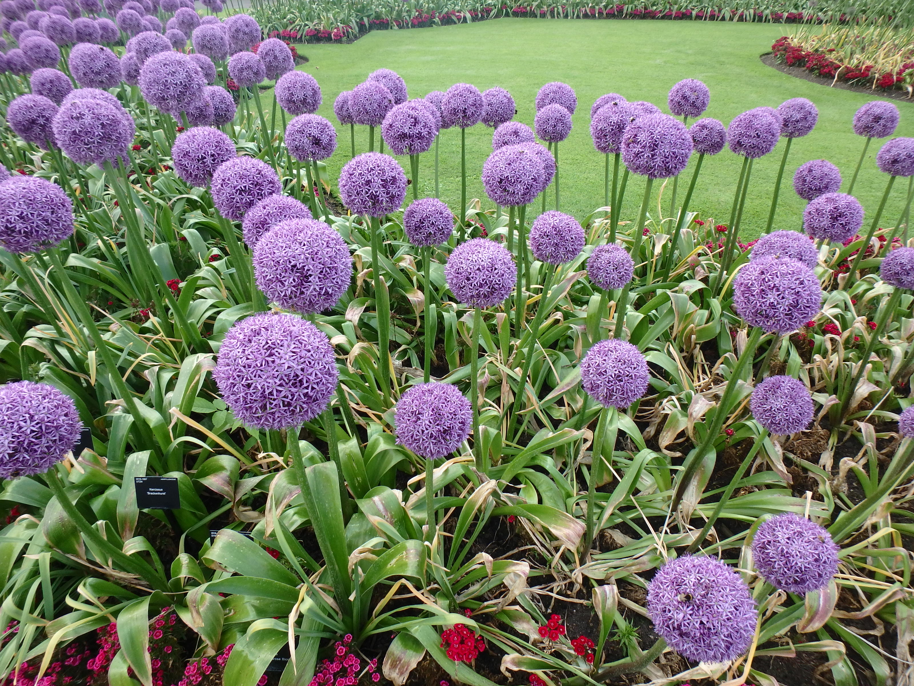 Alliums are bulb plants that vary considerably in size and look according to the species or variety. They’re in the onion family, so not eaten by critters. I was amazed by all the diversity I saw last spring in London at the Chelsea Flower Show, and at Kew Gardens.