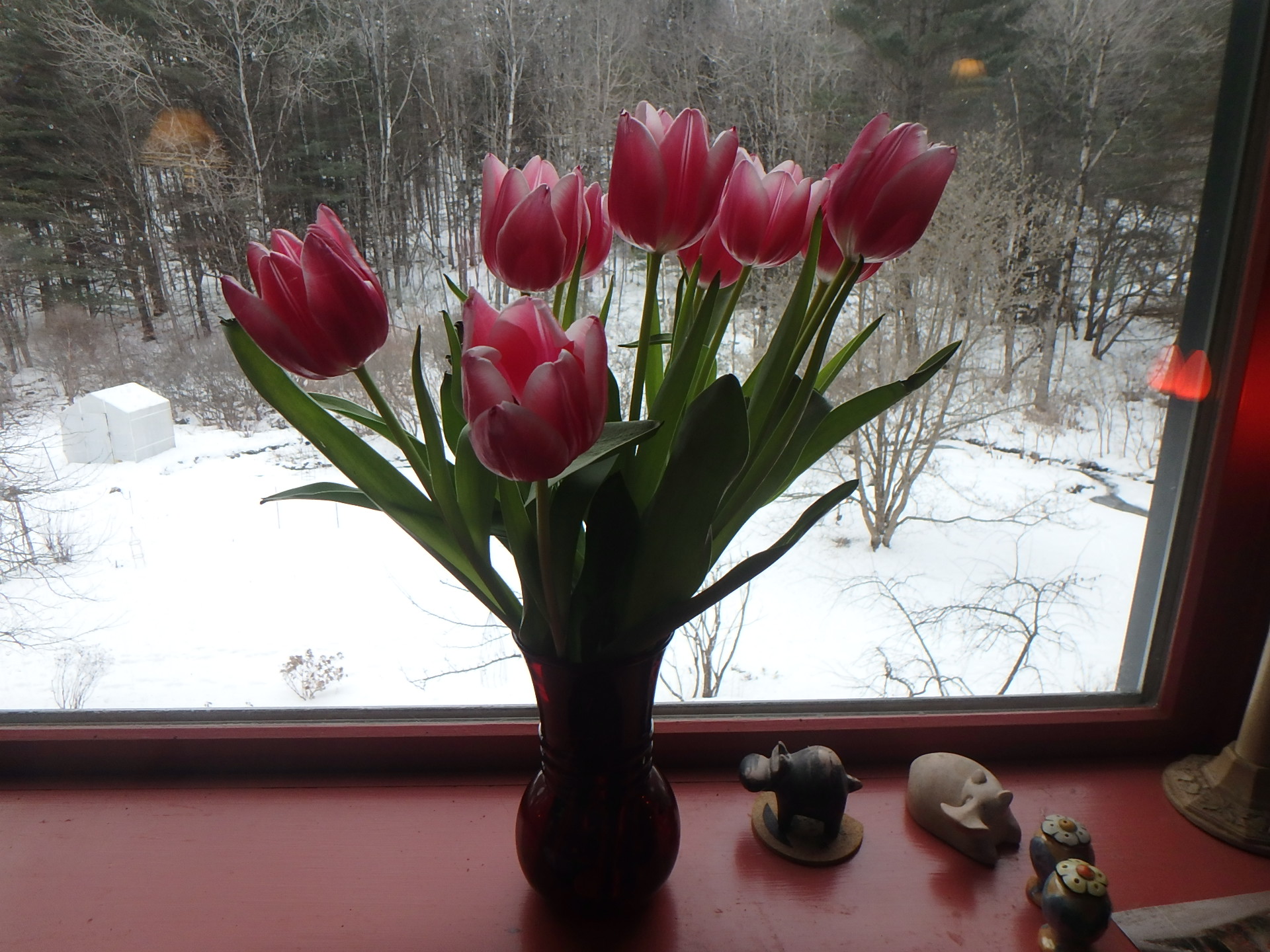 Tulips brighten a winter day